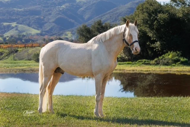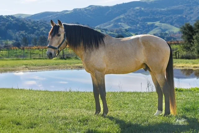 He has beautiful offspring out of mares of several different breeds including Quarter horses, Santa Cruz Island Horses and mustangs. Although he is buckskin he has passed on the creme gene to all offspring creating Buckskins, Palominos and one Cremello (Cougar’s UC Davis color genetics available upon request). His progeny carry his athleticism, versatility and desire to please successfully competing in Eventing and Dressage. They would also make wonderful Western Dressage, Working Equitation or Ranch Horse Versatility horses.